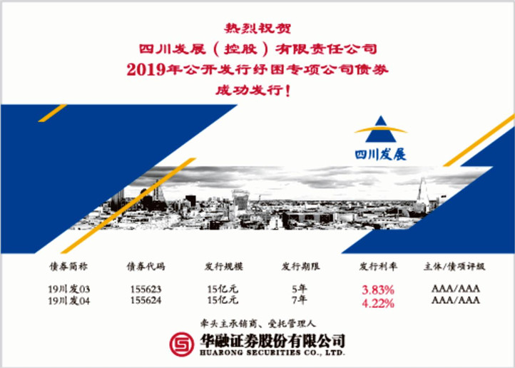 四川發展2019年紓困專項公司債券成功發行,規模共計30億元。